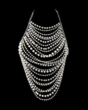 • Fashionable design - perfect pearl fowl back, sleeveless pearl blouse combined by Pearl Chain, worn on the chest, can match your favorite underwear.