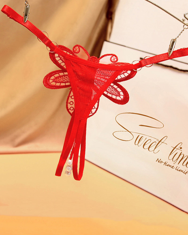 Pearl Crotchless Thong Panties - Black / One Size is backordered and will ship as soon as it is back in stock.